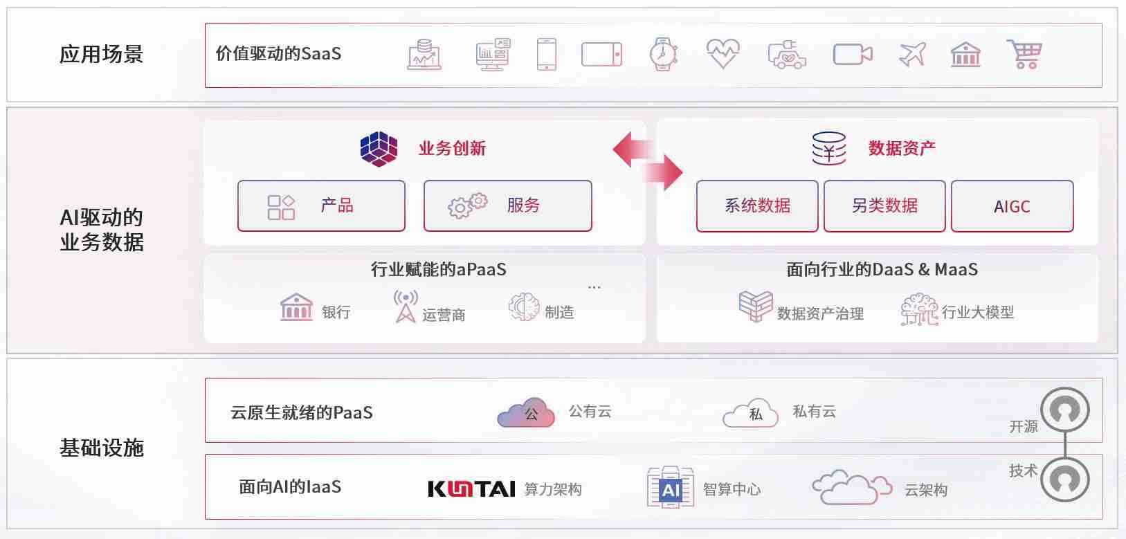数字时代,,,围绕企业数字化转型的关键要素,,尊龙z6数码开创性的提出数云融合战略和技术体系框架,,着力在云原生、、数字原生、、、、AI原生和信创产业上架构产品和服务能力,,,为处在不同数字化转型阶段的快消零售、、、汽车、、、金融、、、医疗、、、政企、、、教育、、运营商等行业客户提供泛在的敏捷IT能力和融合的数据驱动能力,,,,构建跨界融合创新的数字业务场景和新业务模式,,,助力企业级客户建立面向未来的核心能力和竞争优势,,全面推动社会的数字化、、、智能化转型升级。。